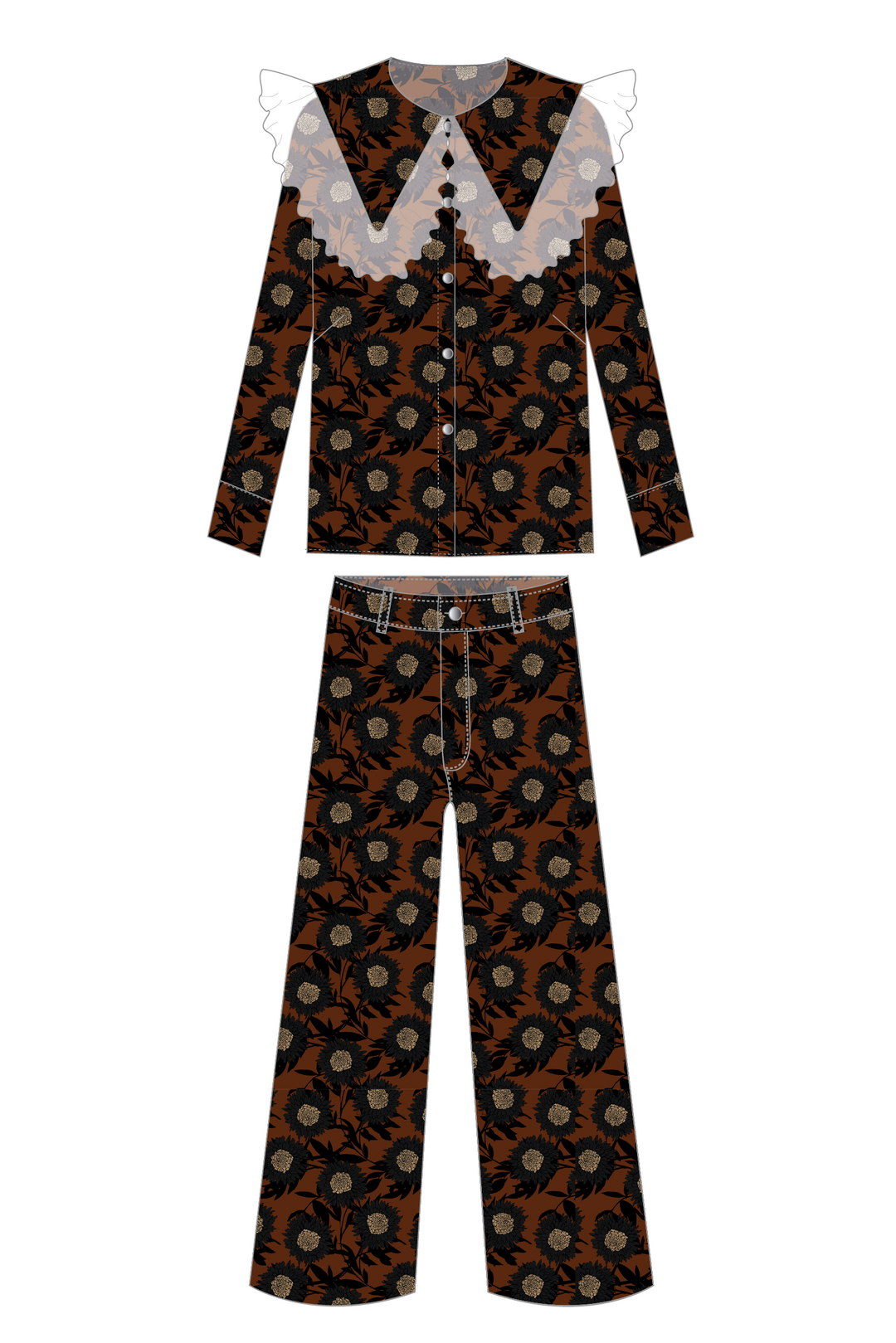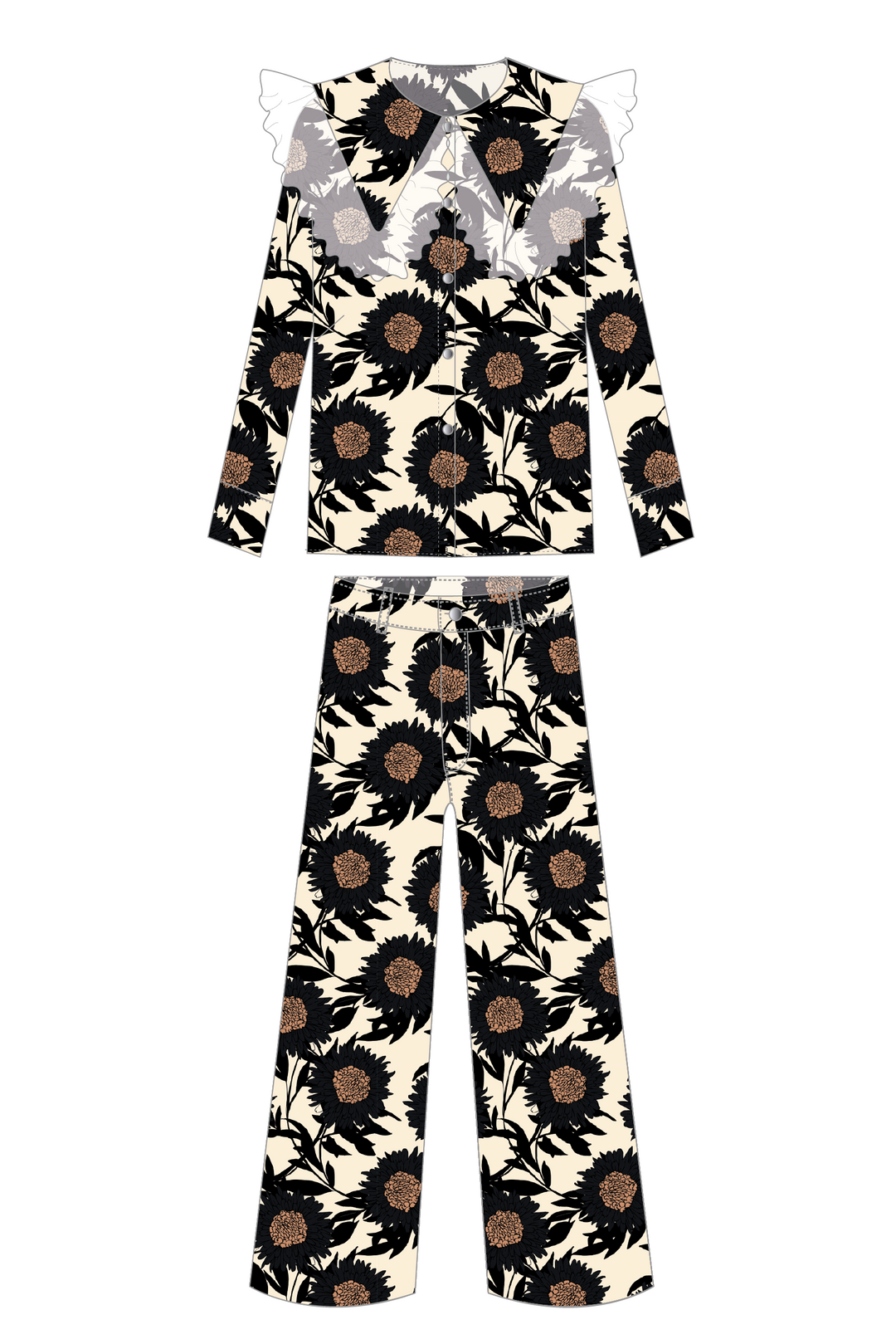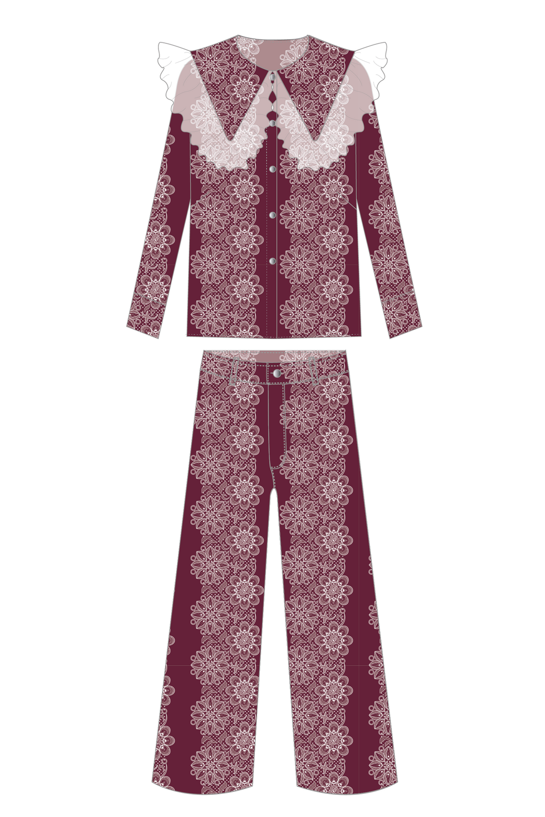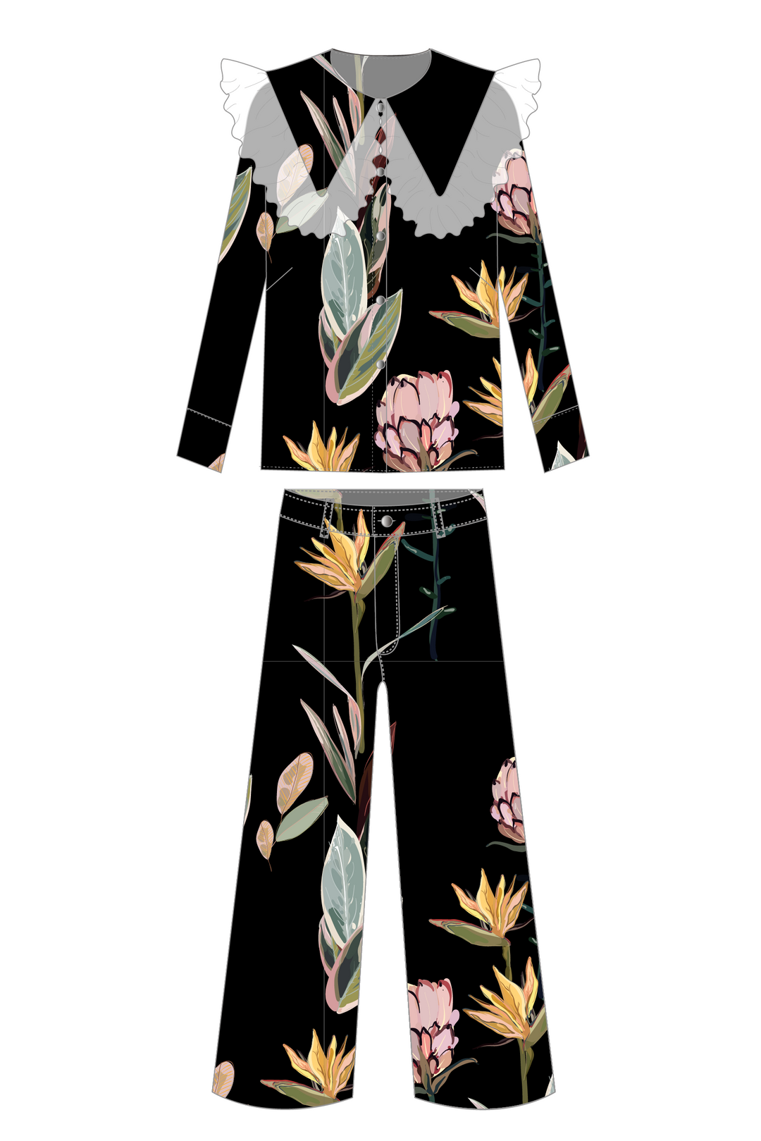 Blusa Cuello Encaje + Pantalón Wideleg