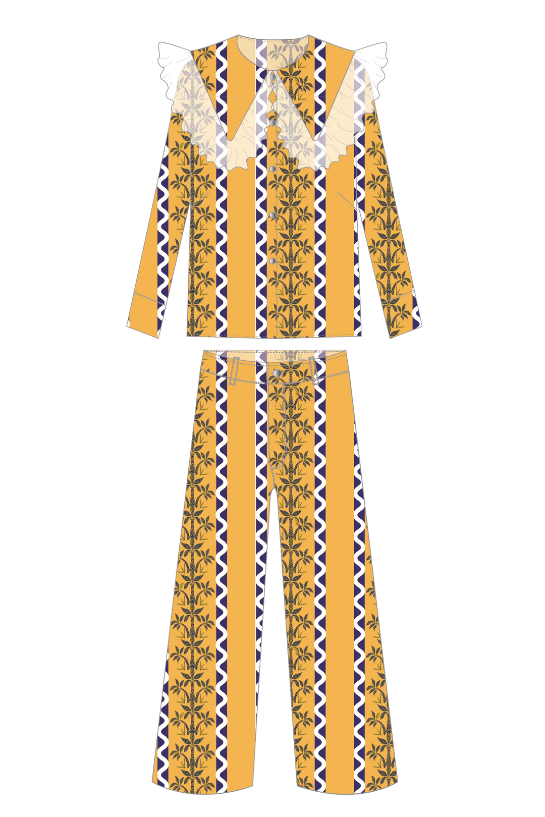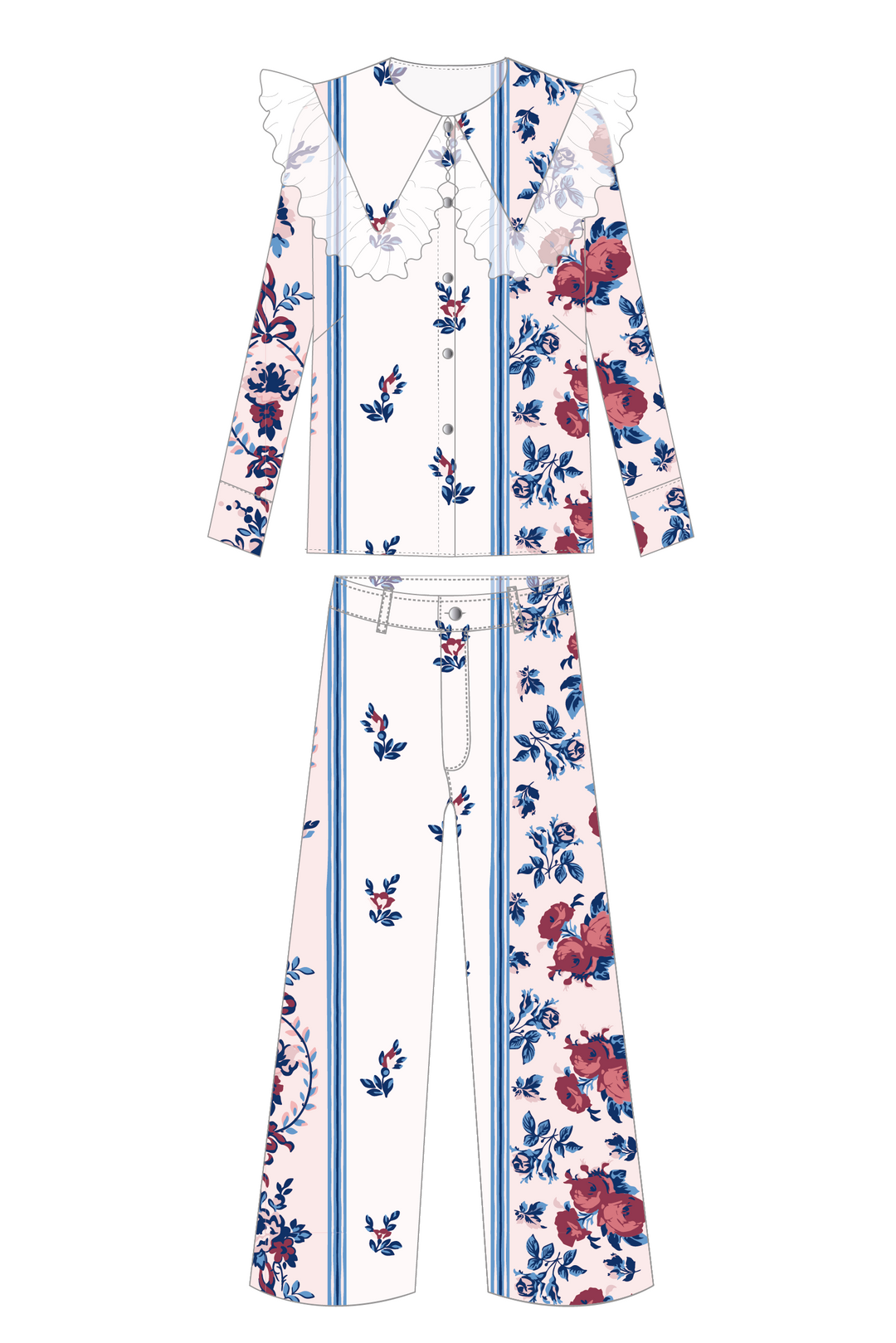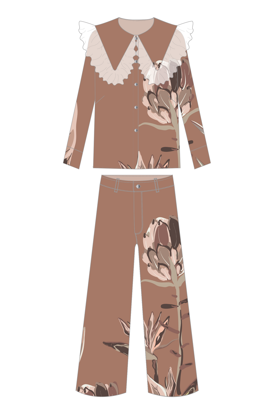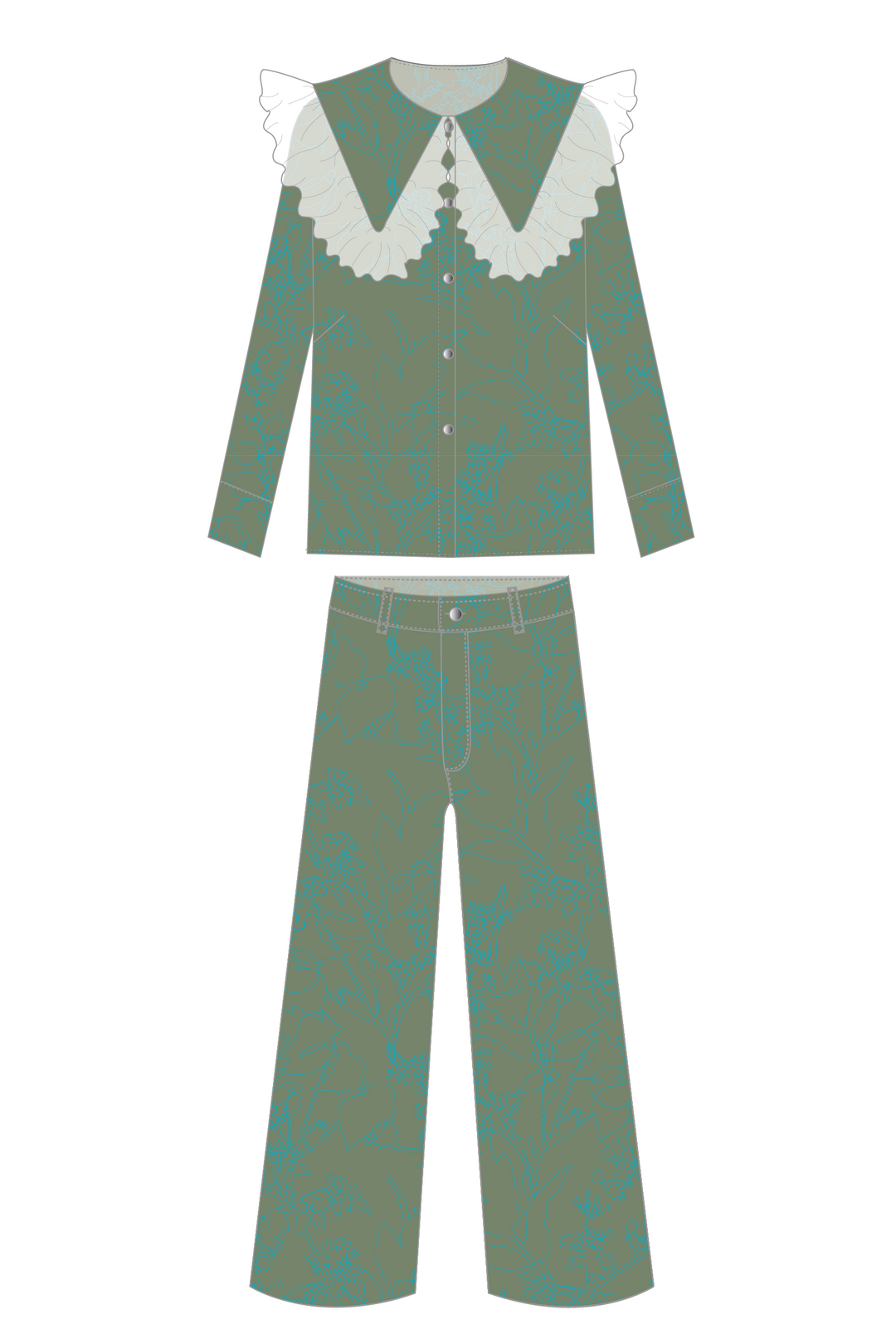 Blusa Cuello Encaje + Pantalón Wideleg