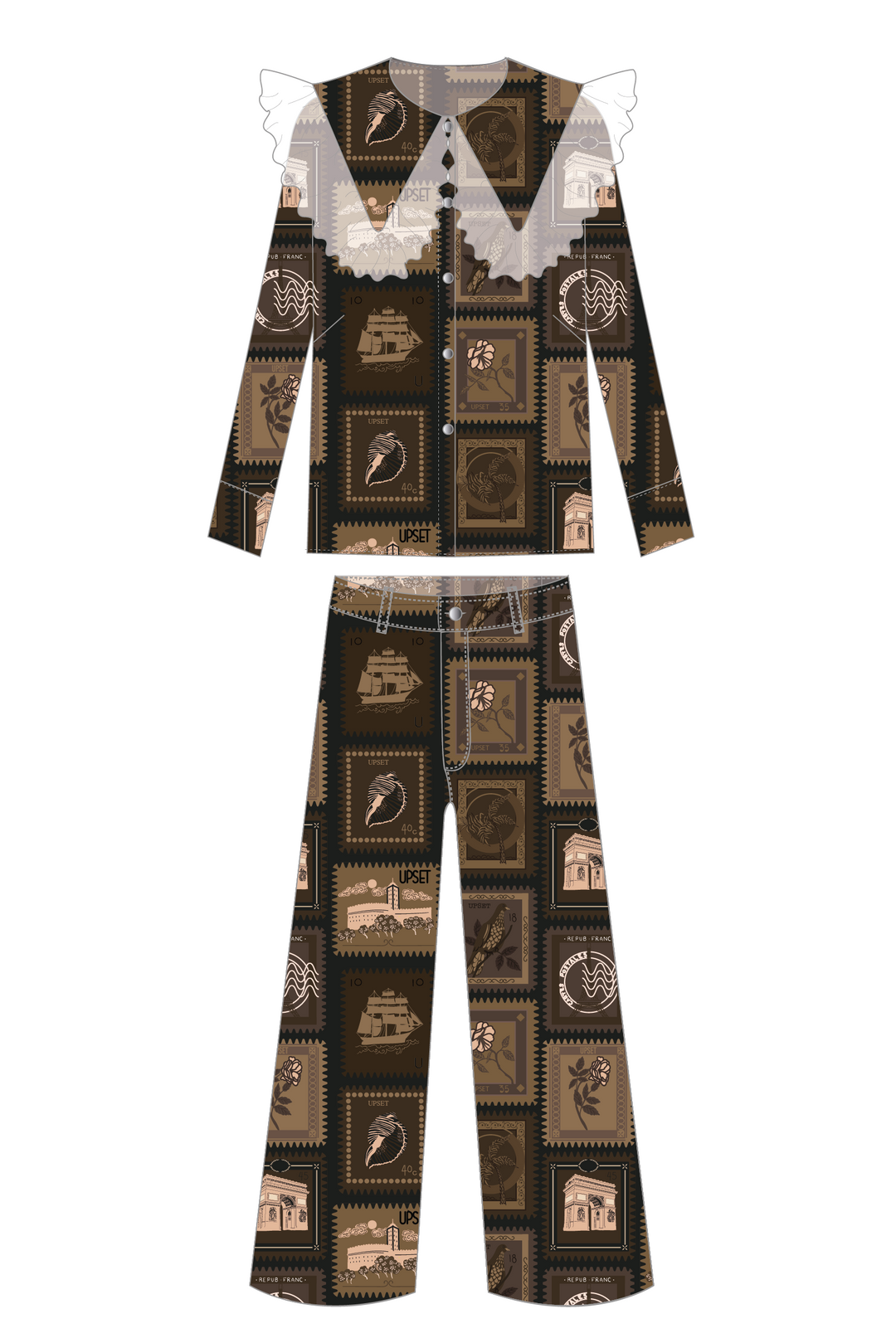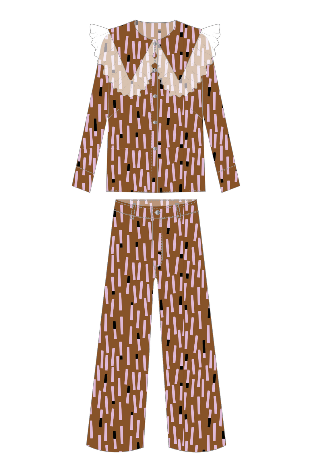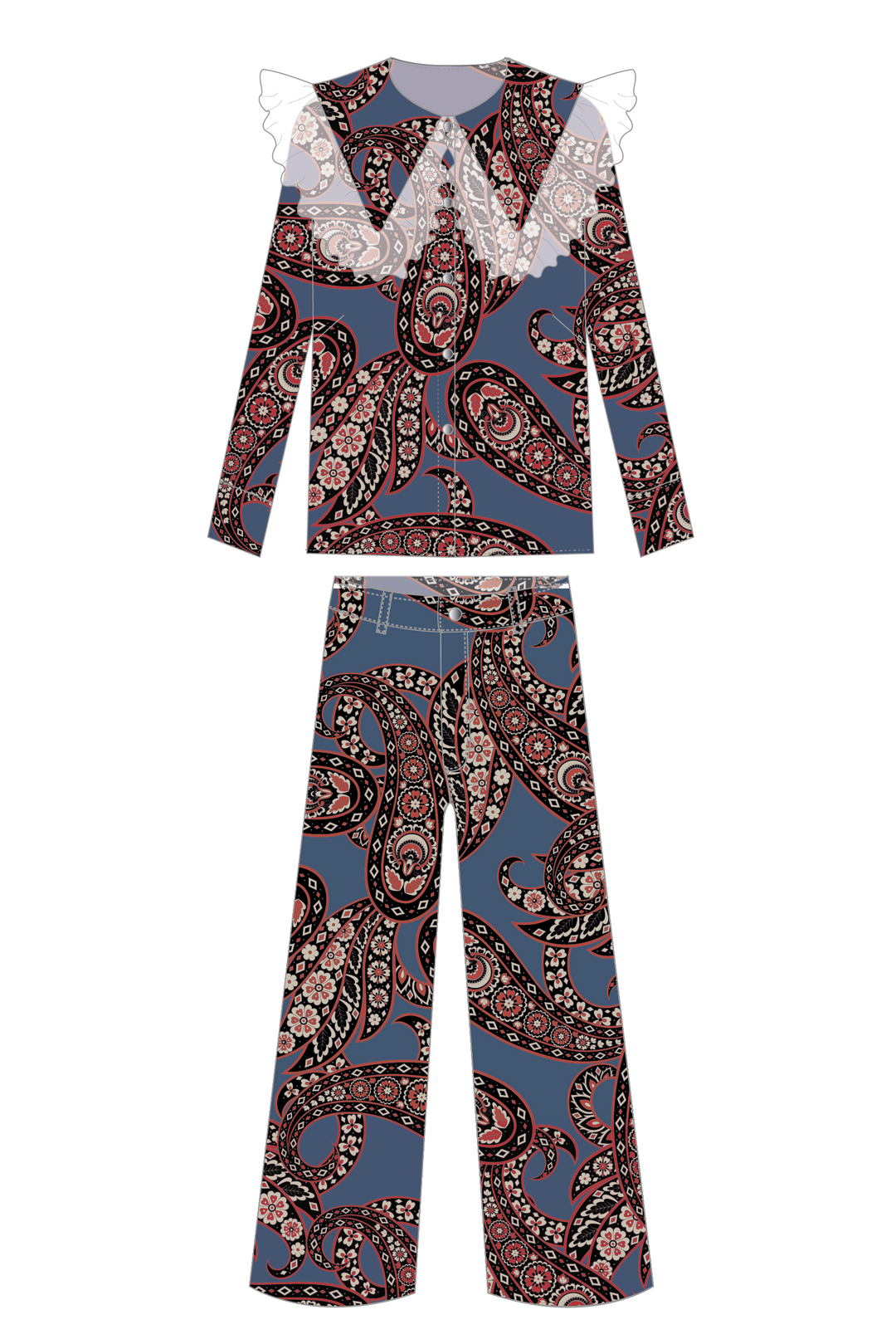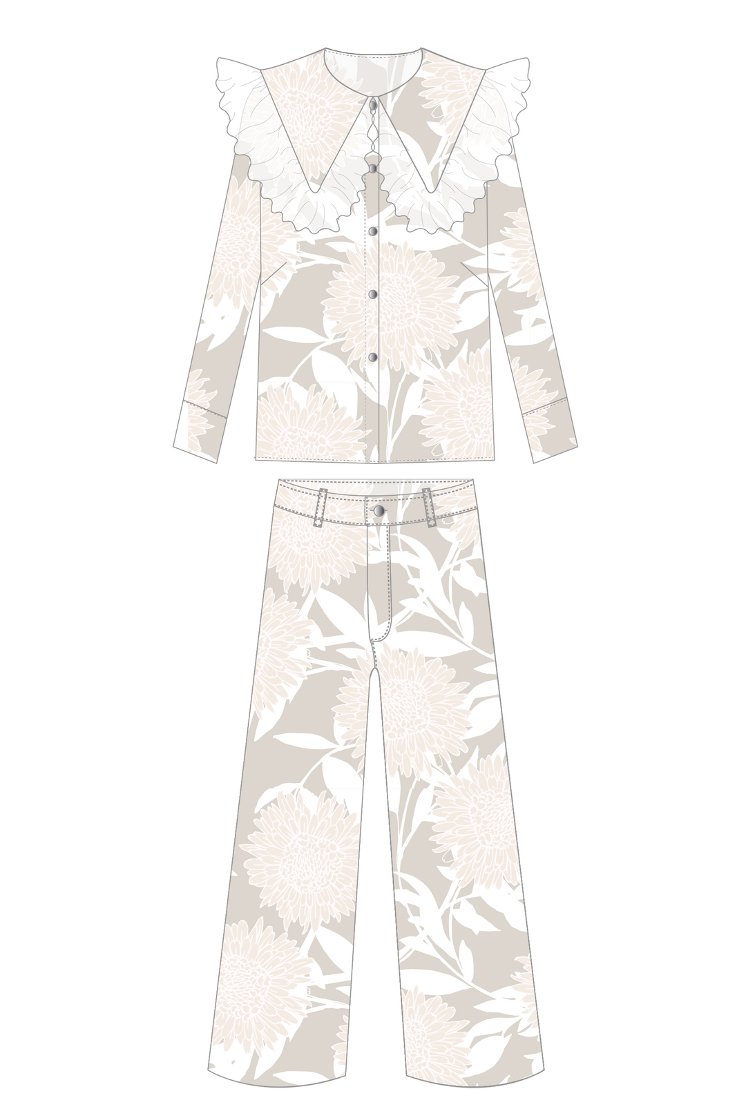 Blusa Cuello Encaje + Pantalón Wideleg