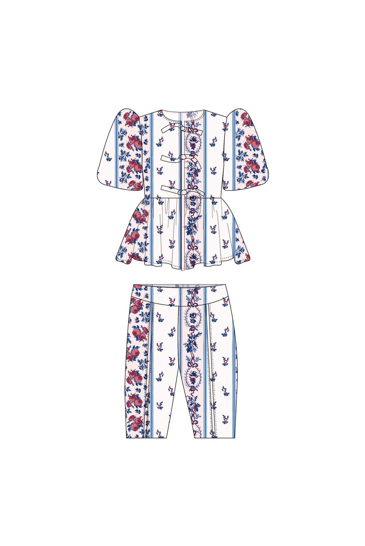 - Blusa manga globo de cuello redondo, pinzas en costados y tres cintas de cierre. Manga con puño elástico. Material lona extra delgada (TTS).