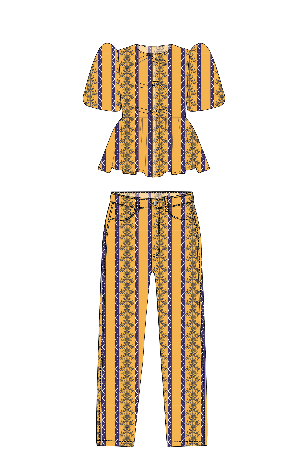 - Blusa manga globo de cuello redondo, pinzas en costados y tres cintas de cierre. Manga con puño elástico. Material lona extra delgada (TTS).