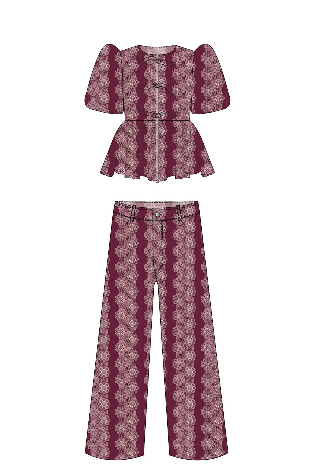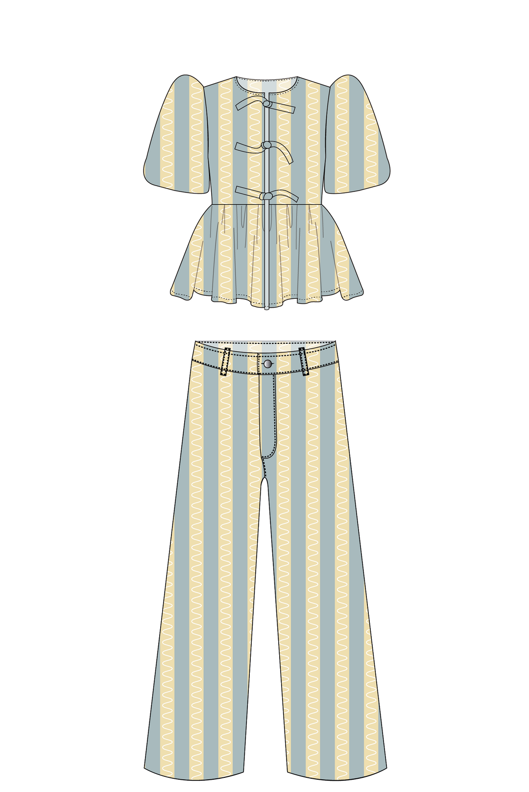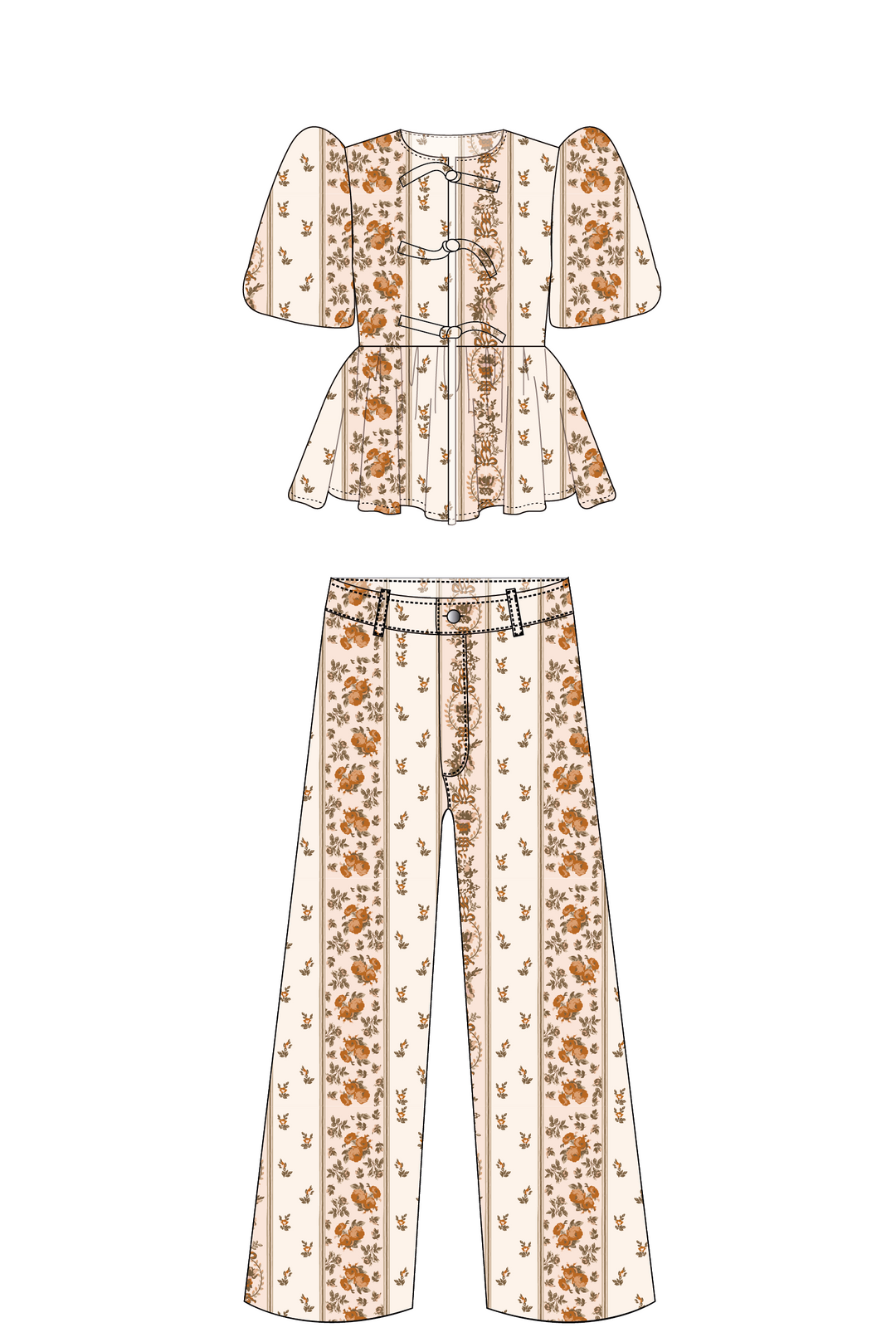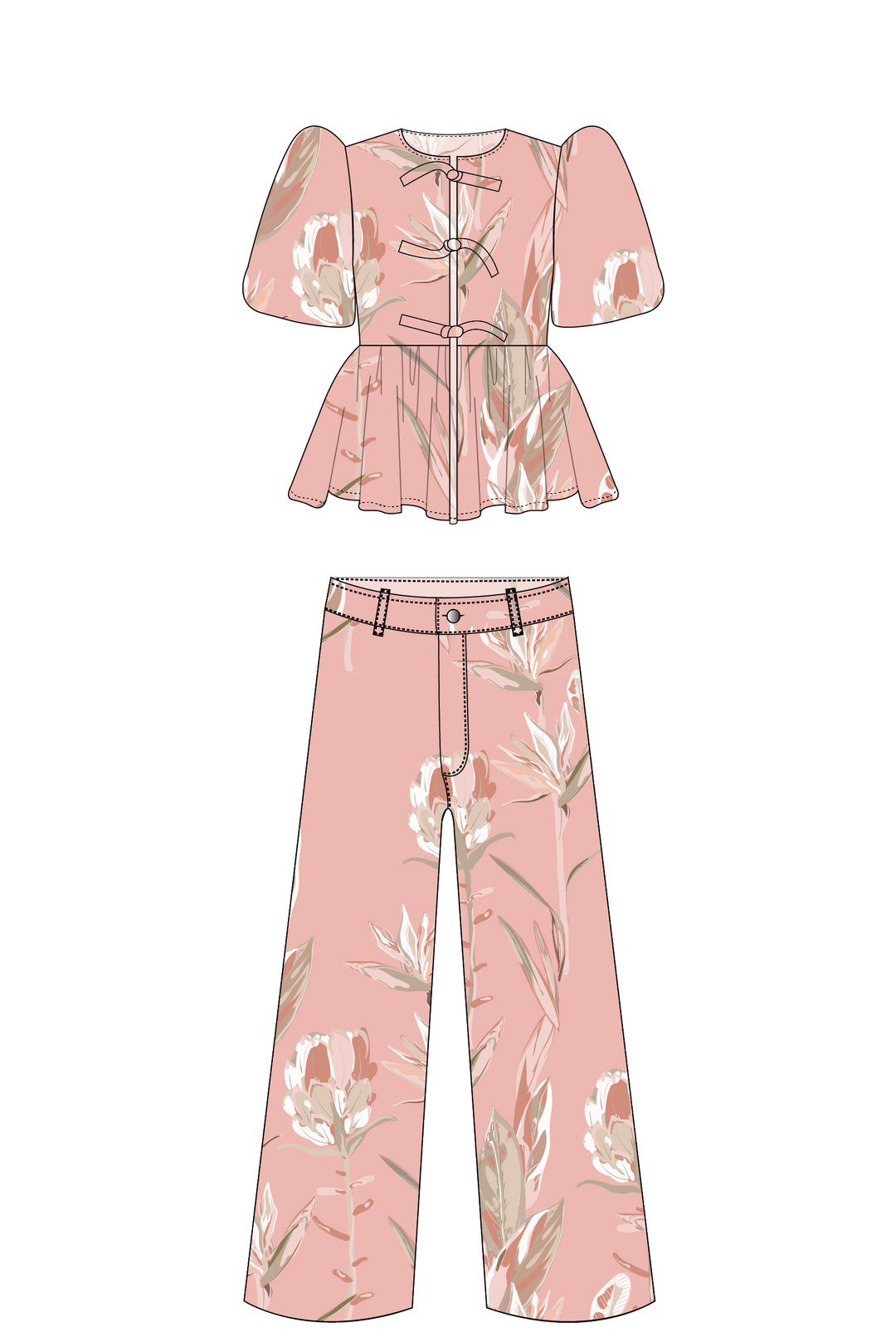 Blusa Manga Globo + Pantalón Wideleg