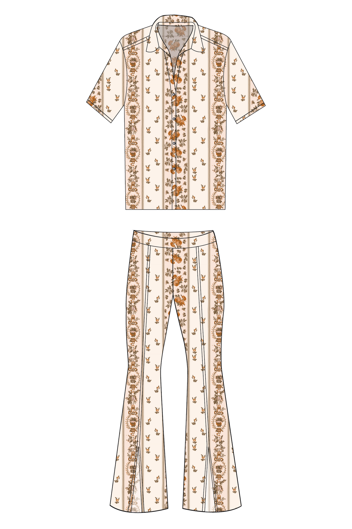 - Camisa manga corta con cuello de solapa. Detalle de vivo en el hombro a contraste. Cierre frontal con botones. Fit relajado.