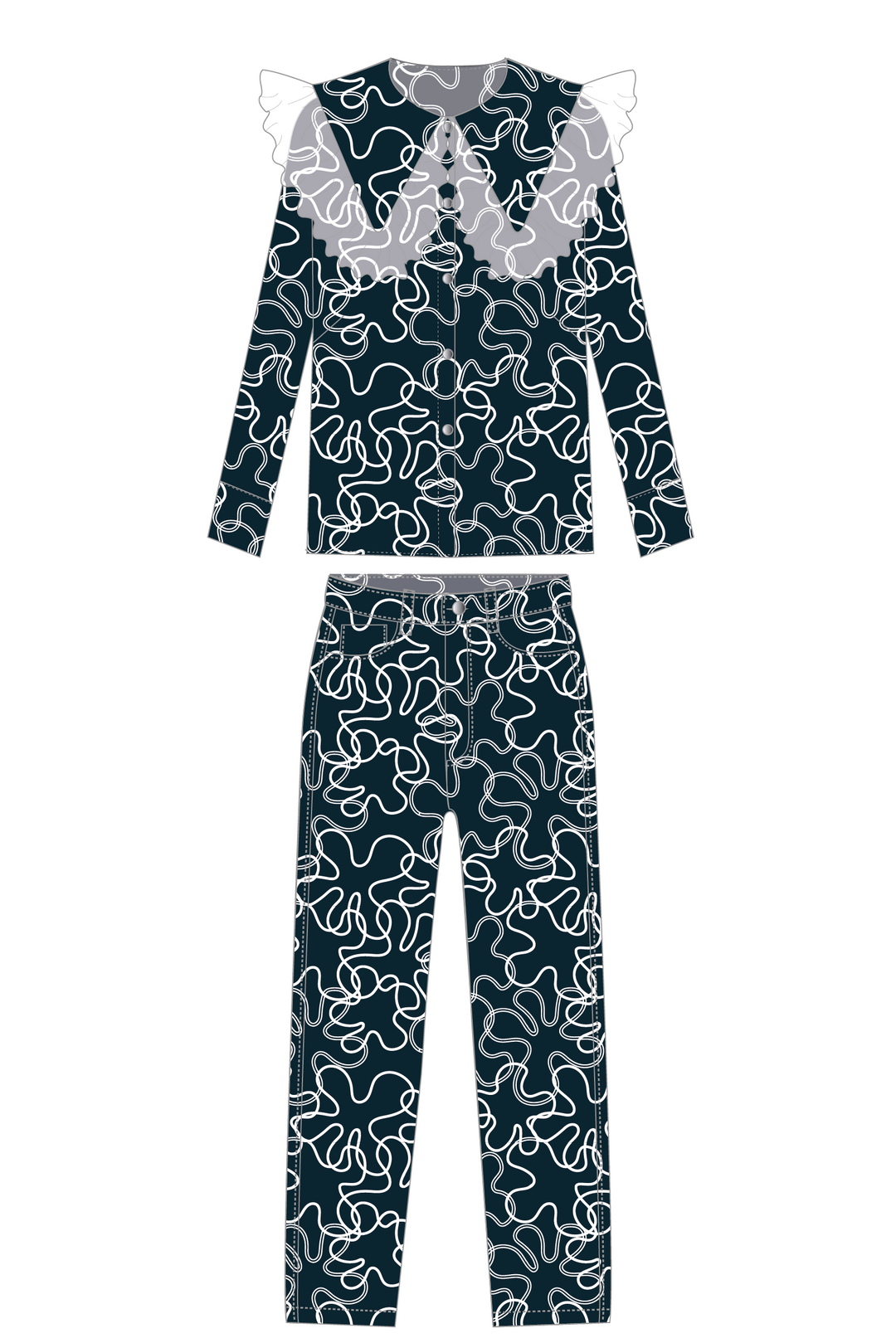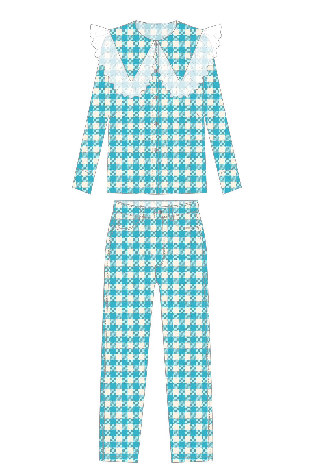 Blusa Cuello Encaje + Pantalón Recto