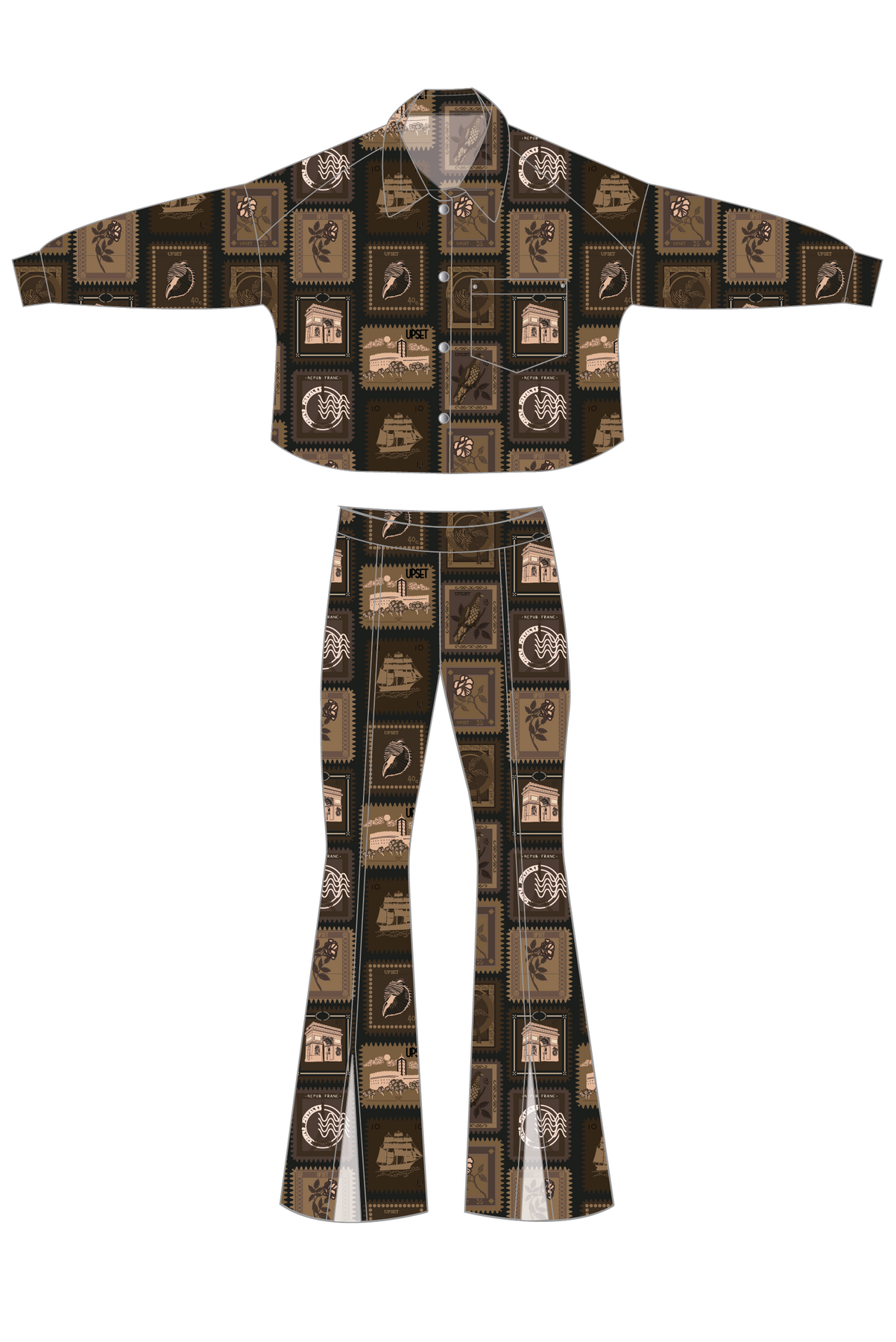 - Sobrecamisa de cuello solapa, hombro caído. Bolsillo en delantero. Cierre frontal con broches, largo cropped, corte recto.