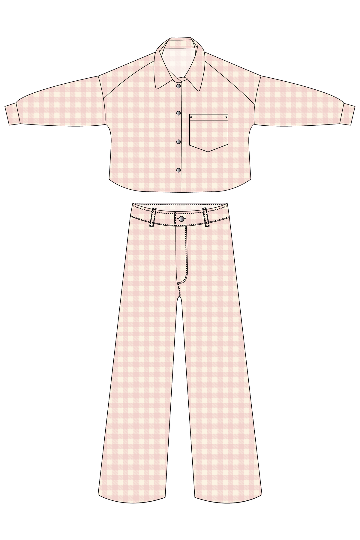 - Sobrecamisa de cuello solapa, hombro caído. Bolsillo en delantero. Cierre frontal con broches, largo cropped, corte recto.