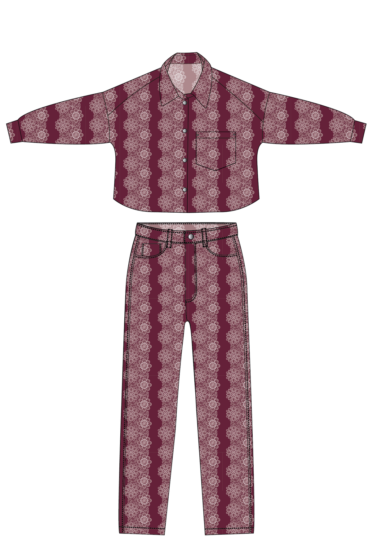 - Sobrecamisa de cuello solapa, hombro caído. Bolsillo en delantero. Cierre frontal con broches, largo cropped, corte recto.